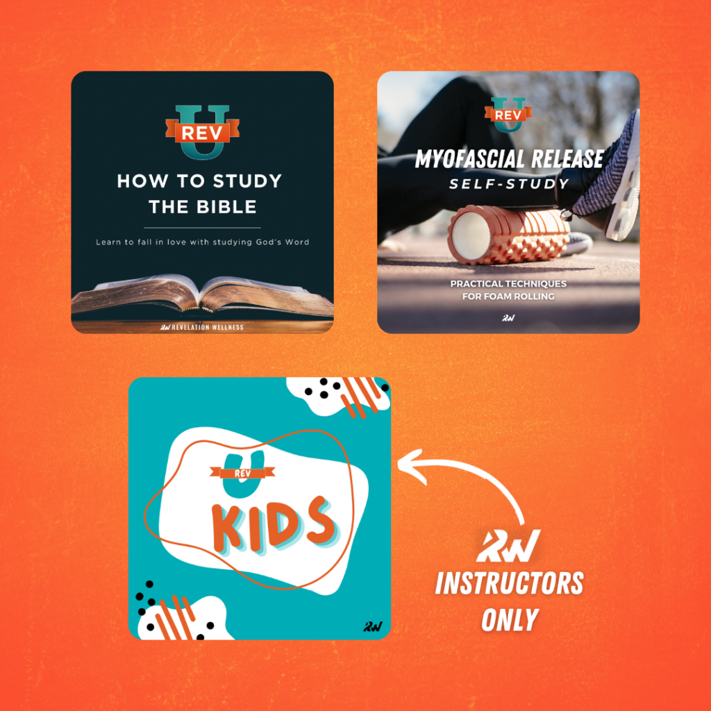 Ready to go deeper? RevU is launching this month! We have three courses you can choose from, including our RevU Kids (open to instructors), How to Study the Bible, and Myofascial Release. We’ve got something for everyone! Sign-up today for RevU!